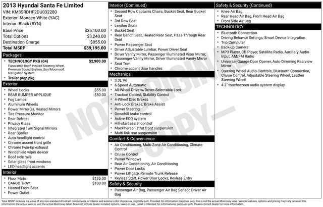 2013 Hyundai Santa Fe Limited AWD Monaco White 6-Speed Automatic with Shiftronic 3.3L V6 DGI DOHC 24V