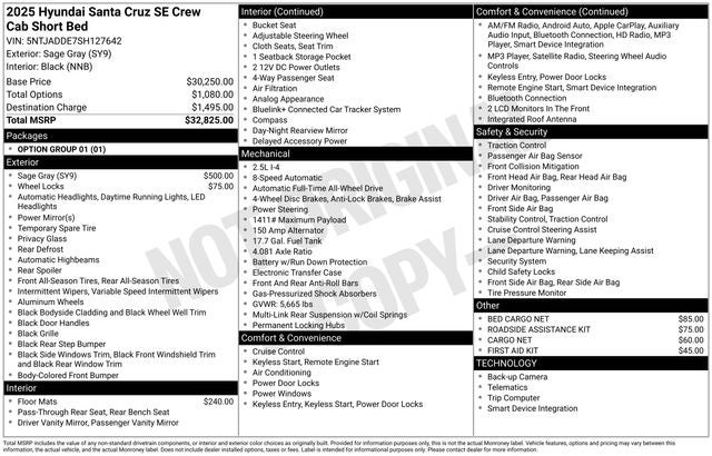 2025 Hyundai Santa Cruz SE Clean CARFAX. AWD Sage 8-Speed Automatic with SHIFTRONIC 2.5L I4